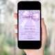 A lavender, violet background, decorated with a large bow and confetti. Personalize and add a name and party details.