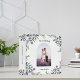 A lavender, violet background decorated with lavender florals and eucalyptus greenery. Personalize and add a photo in the arch frame, your wedding date.