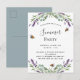 A white background decorated with lavender flowers, eucalyptus greenery and bees. Personalize and your name and details.