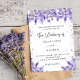 Plain white envelopes are included with paper invitations and will come to fit the invitation size you select. If you don’t need the envelopes, you may choose to not receive them by selecting the dropdown below "Envelopes" and choosing "None." If you’d like to have a design on your envelopes, you can browse all of these available envelopes to find the design that complements your Lavender Violet Floral Wedding Invitation.