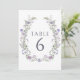 Lavender violet floral wedding table numbers