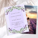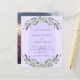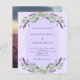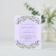 A violet background decorated with purple lavender flowers, eucalyptus greenery and an arch frame. Personalize and your names and details.
