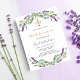 A white background decorated with lavender flowers and eucalyptus greenery. Personalize and a name and details.