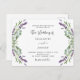 A white background decorated with lavender flowers and eucalyptus greenery. Personalize and your names and details.