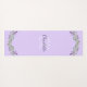 Violet background, decorated with lavender florals and eucalyptus greenery. Personalize and add a name and monogram initials. The name is written with a modern hand lettered style script.