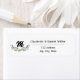 A white background. Decorated with a lavender and eucalyptus greenery wreath. Personalize and add your name, address and family monogram initial.
