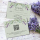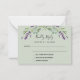 A green background, black text. Decorated with lavender florals and eucalyptus greenery. Personalize and add a reply by date.