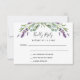 A white background, black text. Decorated with lavender florals and eucalyptus greenery. Personalize and add a reply by date.