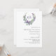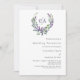 A white background decorated with a lavender flower and eucalyptus greenery wreath, crest. Personalize and your monogram, names and details.