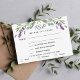 A white background, black text. Decorated with lavender florals and eucalyptus greenery. Personalize and add the reply by date and menu selctions.