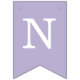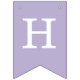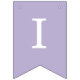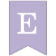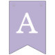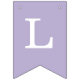 A simple bunting flags banner for a lavender (light purple) wedding, with the names of the bride and groom, with white caps on lavender background.
