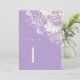 This Lavender & Lilac floral wedding table number features soft watercolor hydrangea blooms layered over a warm lavender background, creating a romantic yet refined reception detail.