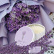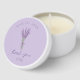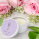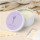 Wedding candle favour with thank you note and couple initials written with sript font in purple color