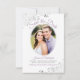 This Save the Date card features a beautiful design with your photo in an oval frame surrounded by lavender or light purple script lettering on a white background, and frilly faux foil silver gray frills in the corners. There is space for the couple's name, wedding location, and website. Elegant and chic way to let your friends and family know to save the date for your special day.