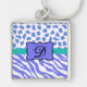 You will love this trendy and sophisticated combination of zebra skin and leopard or cheetah skin personalized with your monogram initial. This stylish lavender periwinkle and white with turquoise teal zebra and leopard print pattern a popular color choice. A lavender purple emblem on a turquoise teal or aqua blue strip creates a personalization area with your monogram. This is fully customizable. This design pattern is available on other products and in other color combinations in this store.