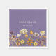 Elevate your wedding table decor with these Lavender Wildflower Boho Wedding Napkins. Featuring a rich lavender purple background and a whimsical bouquet of watercolor wildflowers in fall tones—burnt orange, terracotta, vibrant yellow, cream, and ivory—this charming design is accented by a delicate butterfly at the bottom.