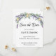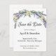 An elegant and vintage design featuring yellow roses, eucalyptus, and lavender painted in romantic watercolor. Customizable Save the Date cards.