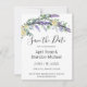 An elegant and vintage design featuring yellow roses, eucalyptus, and lavender painted in romantic watercolor. Customizable SAVE THE DATE -