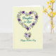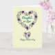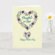This card features a calm, creamy background with a large heart-shaped wreath made of layered blossoms at the center, creating a cozy, affectionate scene ❤️. The flowers mix deep violet, soft lavender, and white petals, each with a tiny contrasting center that adds gentle detail. Fresh green leaves weave between the blooms, and the overall shape feels like an embrace, as if the design is leaning in with quiet affection. Inside the floral heart, a short relationship-focused message sits centered in a flowing, calligraphy-like style, shown in a dark tone that stands out clearly against the light backdrop. Near the top inside edge of the wreath, a small solid purple heart adds a sweet accent without crowding the main message. Beneath the wreath, a smaller matching bouquet mirrors the same flowers and leaves, like a little companion arrangement 🌼. Below that bouquet, a second line of text is placed near the lower center in deep teal, using the same flowing lettering style for a seasonal greeting. The petals show soft shading in purples and white, with crisp green leaves tucked neatly around the heart outline.