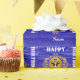 This gift wrap can be for any occasion. I made it for Birthday. But that can be changed as I made all the text customizable. You can say "Happy Retirement" or Change "Happy" To "Get Well" and the vertical text to "Soon." Or Delete Happy and Put "Congratulations" and then vertically put the names of the couple i.e. "Joe & Sue" or whatever you want. The design features a royal blue swirl (satin look) background with a gold medallion that is overlaid with a law enforcement icon I created. This Icon features a badge with two guns on each side. On top are two police tapes and a policeman's cap. Below are handcuffs that dangle.