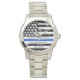 Celebrate and show your appreciation to an outstanding Police Officer with this Thin Blue Line Police Retirement Watch - American flag design in Police Flag colors, distressed design .