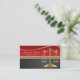 Lawyer Business Cards. Featuring a metallic gold Scales of Justice designed on a red and black background. 100% Customizable. Ready to Fill in the box(es) or Click on the CUSTOMIZE button to add, move, delete or change any of the text or graphics. Made with high resolution vector and/or digital graphics for a professional print. NOTE: (THIS IS A PRINT. All zazzle product designs are "prints" unless otherwise stated under "About This Product" area) The design will be printed EXACTLY like you see it on the screen and on the product...so please make sure when you do your changes on the resizing of any of the graphics or text that it fits in the areas correctly and that your spelling and wording is how you like it to be in size, color and font. If you have any questions about this design please contact me at siggyscott@comcast.net or visit my store link: http://www.zazzle.com/designsbydonnasiggy?rf=238713599140281212 (Copy and Paste) I'll be happy to help. Thank you for the support and stopping by my store - DesignsbyDonnaSiggy. © Donna Siegrist