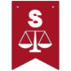 Creative law school graduation congratulations party decor featuring scales of justice on red background new grad, lawyer, attorney or honorable judge.
