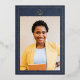 Modern formal elegant luxury navy blue leather look and real gold foil law school graduation party celebration invitation template with your custom photo and text. ++++++++++ Easy to personalize with your details!