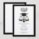 Creative law school grad party invites featuring unique design and funny lawyer humor.