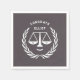 Creative law school grad party napkins featuring funny scales-of-justice art and congrats for your favorite new lawyer. Edit text to add his or her name.