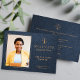 Modern elegant luxury navy blue leather look and gold law school graduation announcement card template with your custom photo and text. ++++++++++ Easy to personalize on both sides!