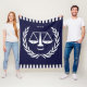 Creative lawyer blanket featuring scales of justice humor. Edit text to add law school grad, lawyer, attorney or judge's name.
