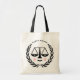 Funny lawyer gift bag or unique work tote featuring cartoon scale of justice and creative quote.