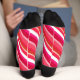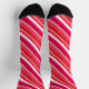Socks in Layered, 3-d look, diagonal, candy cane stripes in multiple shades of red, deep to pale pink, and white