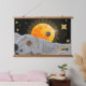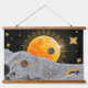Layered collage aesthetics with celestial motifs, hanging tapestry