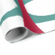 This wrapping paper design has two layers of white ovals on a field of teal and beet.