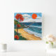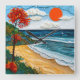 Layered paper art beach with a tree square wall clock