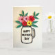 Designed with a layered paper-craft look, the card centers on a stylized jar shown as a white shape with strong black outlines and a simple handle. From the jar’s opening, a bouquet of bright blossoms rises like a shared gift, suggesting closeness in the way the flowers cluster together ❤️. The petals mix fuchsia, rose-pink, and sunny yellow, each with a textured crimson-brown center that adds depth. Emerald green leaves tuck around the blooms, guiding the eye upward and outward like an embracing frame. Across the front of the jar, the text “HAPPY MOTHER’S DAY” sits in raised black letters, centered and easy to read. Soft, even lighting creates gentle shadows along the overlapping petals and leaves, giving the arrangement a cozy, touchable feel 🌼. The background stays simple so the jar and bouquet stand out, with the black outlines sharply defining the edges against the white space. The jar’s black outline and handle are crisp, and the flower centers appear as small, dark reddish-brown circles.