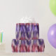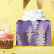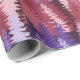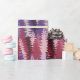 An illustration of layered pine trees arranged in horizontal bands, featuring cool violet, lavender, and pink shades.