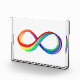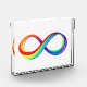 Bright symbol of infinity from plastic layers of red, yellow, green, turquoise, blue and purple saturated colors on white background.