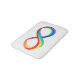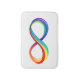 Bright symbol of infinity from plastic layers of red, yellow, green, turquoise, blue and purple saturated colors on white background.