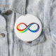 Bright symbol of infinity from plastic layers of red, yellow, green, turquoise, blue and purple saturated colors on white background.