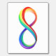 Bright symbol of infinity from plastic layers of red, yellow, green, turquoise, blue and purple saturated colors on white background.