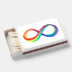 Bright symbol of infinity from plastic layers of red, yellow, green, turquoise, blue and purple saturated colors on white background.