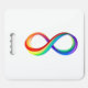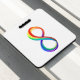 Bright symbol of infinity from plastic layers of red, yellow, green, turquoise, blue and purple saturated colors on white background.