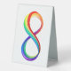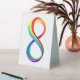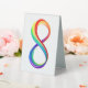 Bright symbol of infinity from plastic layers of red, yellow, green, turquoise, blue and purple saturated colors on white background.