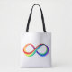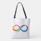Bright symbol of infinity from plastic layers of red, yellow, green, turquoise, blue and purple saturated colors on white background.