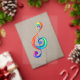 Musical key drawn from multicolored layers of rainbow colors on white background.