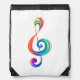 Musical key drawn from multicolored layers of rainbow colors on white background.