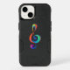 Musical key drawn from multicolored layers of rainbow colors on white background.